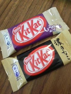 キットカットおいしかった!しょうゆ味がメイプルっぽい味だったのでうまうま^^きなこ味はふつーな感じでした。